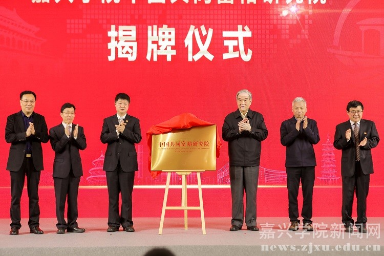 开幕式上,祝亚伟、逄锦聚、陈先春、邢海华、卢新波、胡俊云共同为嘉兴学院中国共同富裕研究院揭牌。