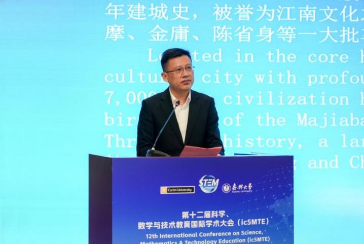 金球代表嘉兴市政府,对嘉兴教育发展研究院的成立表示热烈祝贺,并向与会嘉宾表示诚挚欢迎。他指出,嘉兴教育发展研究院的正式揭牌是嘉兴贯彻落实国家教育、科技、人才一体化发展战略部署,全力构建高质量教育体系的重要举措。他希望,嘉兴教育发展研究院要聚焦国家教育现代化目标,围绕教育改革发展中的重大理论与实践问题,打造战略智库;要坚持“理论研究”与“实践探索”双轮驱动,形成可复制、可推广的“嘉兴经验”;要促进开放协作,积极搭建国内外交流平台,引入全球先进教育理念与资源,努力成为引领教育变革的关键力量。他期待以本次大会为纽带,拓宽国际交流合作渠道,推动科学、数学与技术教育创新发展,吸引更多全球智慧资源汇聚嘉兴、助力嘉兴。