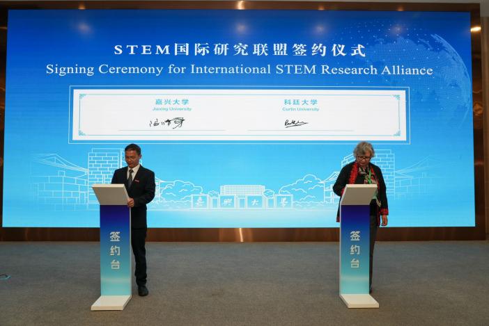 开幕式上,还举行了STEM国际研究联盟签约仪式,标志着由嘉兴大学与科廷大学共同发起的STEM国际研究联盟正式成立,联盟成员在STEM教育领域的合作迈出坚实的一步。该联盟汇聚全球20余所高校及科研机构,致力于探索STEM教育的伦理影响、社会价值及创新教学模式。