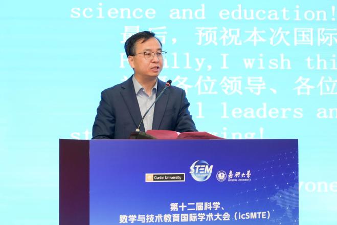 梅德庆在致辞中表示,服务地方是高校的职责使命,广泛开展全球合作与对外交流是提升人才培养质量和教育国际化水平的必由之路。嘉兴教育发展研究院的成立,是嘉兴大学积极响应嘉兴教育强市战略、促进区域教育协同发展的又一重要举措。他希望,嘉兴教育发展研究院聚焦教育发展前沿,深入贯彻一体推进教育、科技、人才高质量发展的战略部署,促进基础教育与高等教育有机衔接,助力构建区域高质量教育体系。他期待大会形成的宝贵成果为嘉兴教育发展研究院的建设提供坚实的理论支撑和实践参考,推动STEM理念与区域教育深度融合,助力培养更多具有创新精神和实践能力的时代新人,助推全球科教事业发展进步。