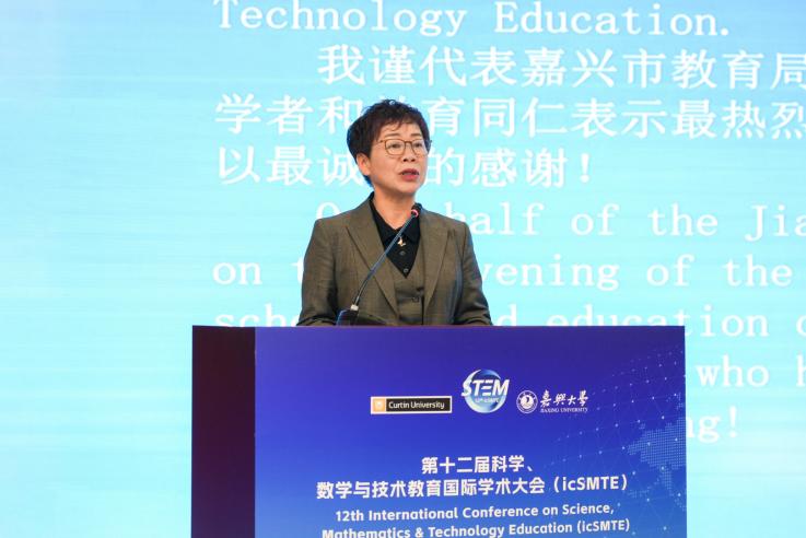 武曜云表示,嘉兴教育坚持以红船精神为引领,全力打造“优学在嘉”教育品牌,取得了显著成效。近年来,嘉兴市教育局将STEM教育作为推动基础教育改革、培养创新人才的重要抓手,取得了显著成效。她希望,各位专家多传经送宝、参会教师珍惜交流机会,在观摩研讨中碰撞思想、凝聚共识,将先进理念与实践经验转化为嘉兴推动科学、数学与技术教育改革的具体路径。她表示,将以此次会议为纽带,深化多方合作,共同构建适应新时代要求的科学、数学与技术教育新生态。