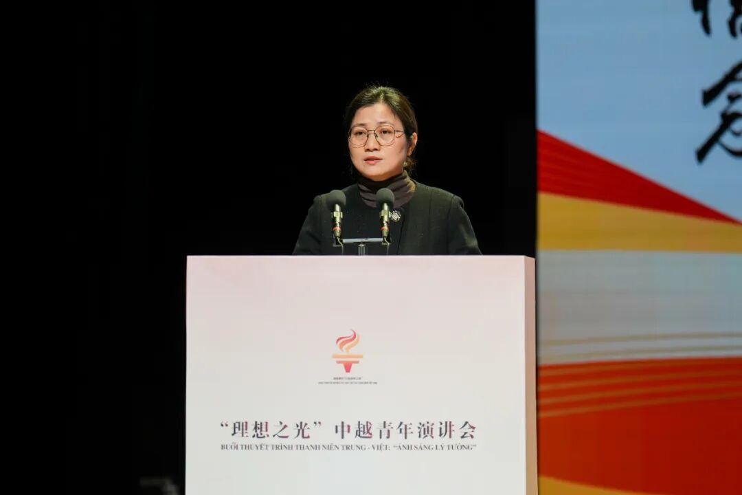 董霞在致辞中表示,中国和越南是山水相连的社会主义友好邻邦,是好邻居、好朋友、好同志、好伙伴。共同的理想信念是中越友好的红色基因,一代代追求理想之光的青年是社会主义事业的未来希望。希望中越青年赓续红色基因,做中越友谊的传承者;加强互学互鉴,做中越社会主义事业的推动者;深化团结合作,做中越命运共同体的建设者,把两国领导人的共同期待转化为两国青年的共同行动。