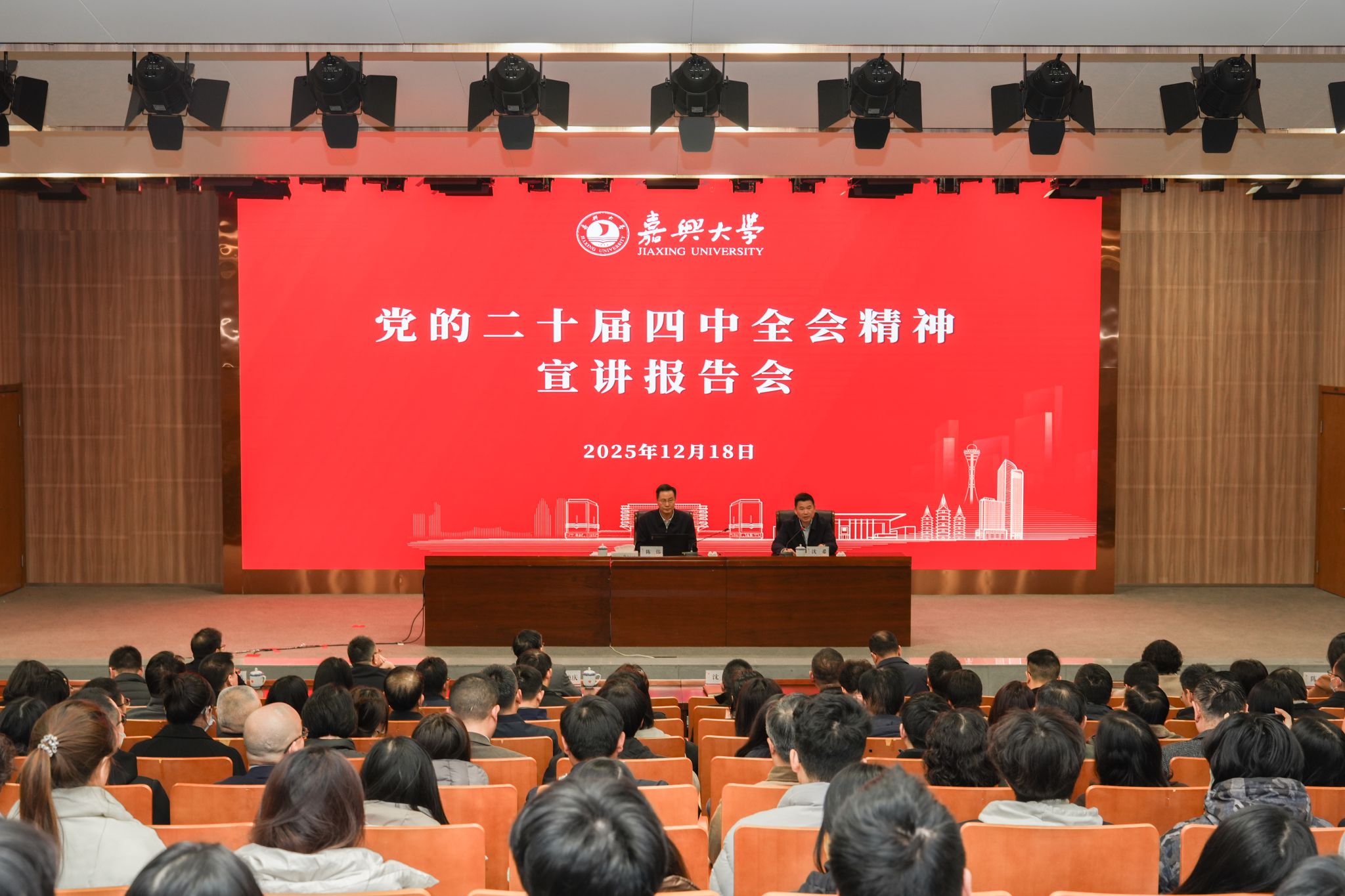 沈希强调,全校师生要以此次宣讲为契机,深入学习宣传贯彻党的二十届四中全会精神,在“学深悟透”上持续发力,自觉把思想和行动统一到中央、省委和市委的决策部署上来,主动对接嘉兴“十五五”规划,科学谋划学校“十五五”发展,切实把学习成果转化为推动学校高质量发展的实际行动;在“立德树人”上持续发力,大力弘扬伟大建党精神、红船精神,教育引导广大青年学子筑牢信仰之基、涵养立身之德、遨游知识之海、勇攀创新之峰、砥砺担当之勇,在嘉兴这片红色沃土上施展才华、建功立业;在“赋能地方”上持续发力,立足学校办学定位和特色优势,聚焦嘉兴“两个确保”的总体目标和“八个新”的重点任务和工作举措,深化校地融合发展,做深做透“两篇大文章”,加快“冲‘A’、拼‘博’、创一流”步伐,为嘉兴打造长三角城市群重要中心城市作出嘉兴大学更大贡献。