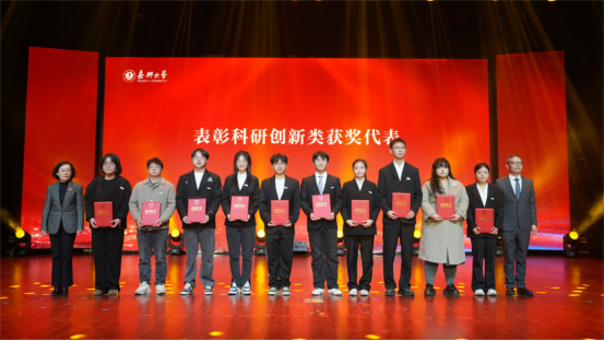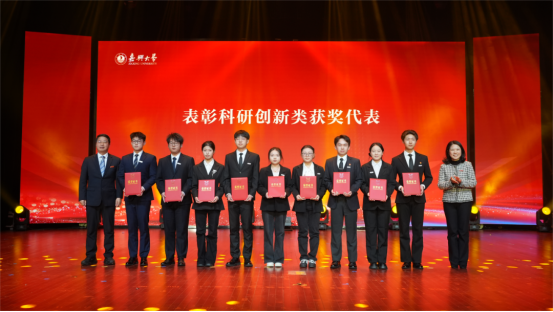 科研创新优秀教师代表尹新星博士分享科研感悟,他说,在嘉大能感受到人人进学科、学科有团队、团队连产业的浓厚氛围,亲身扎根实验室,多与顶级学者深入交流,瞄准方向坚持做正确的事,就一定能积累破土而出的力量。
