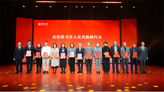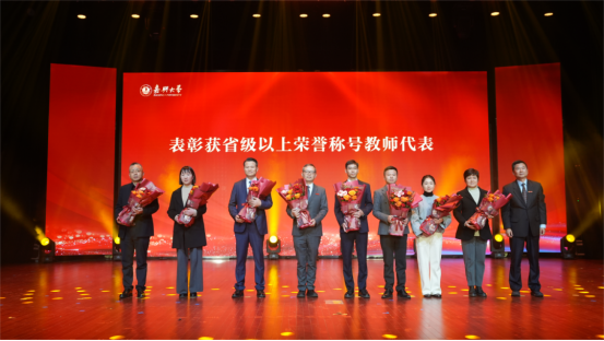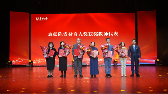 沈希为在各领域获省级以上荣誉称号的教师代表颁奖。