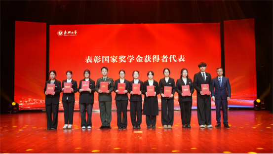 梅德庆为国家奖学金获得者代表颁奖。