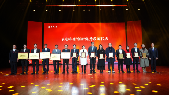陈新友、王立玮为获横向重大科研项目、省级科研平台、省级科研成果奖,发表高水平论文的教师代表颁奖。