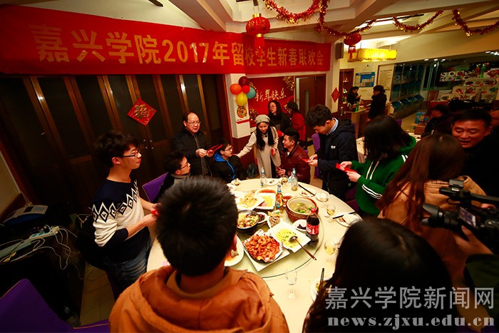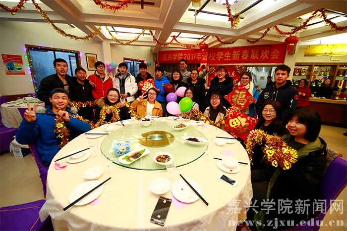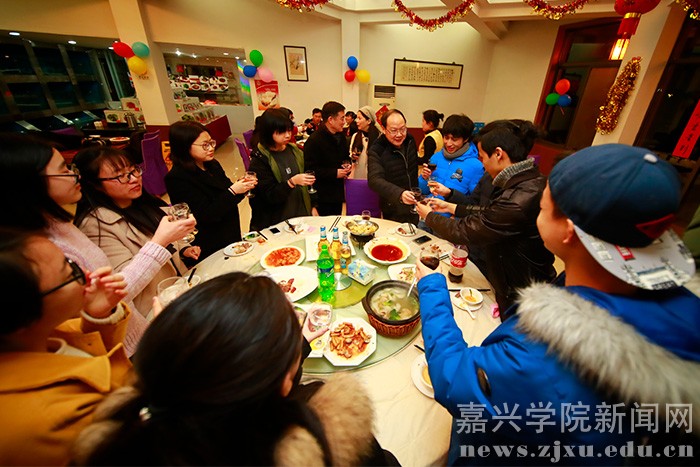 元月24日晚,校文苑宾馆餐厅张灯结彩、装扮一新,充满了节日的氛围,2017年留校学生新年联欢会暨留校学生年夜饭活动在这里隆重举行。校党委书记黄文秀出席庆祝活动,代表学校向全体留校学生拜年,并致以亲切的问候和新春的祝福。学生工作处、安全保卫处、后勤服务集团负责人及40余名留校学生们欢聚一堂,共同迎接新的一年。