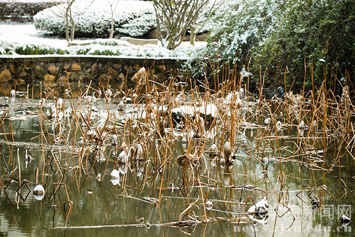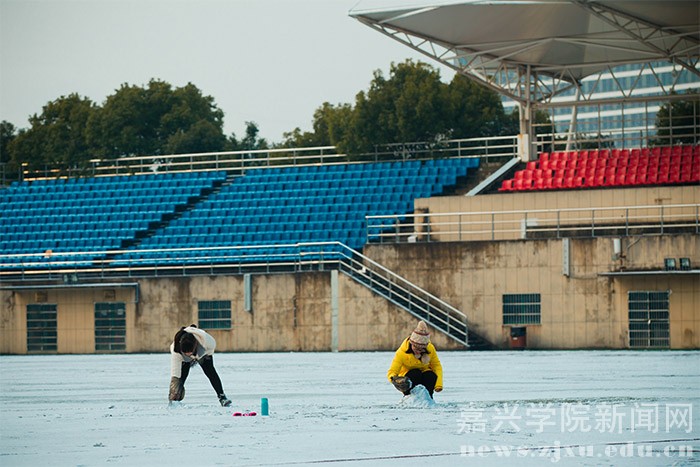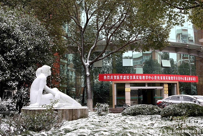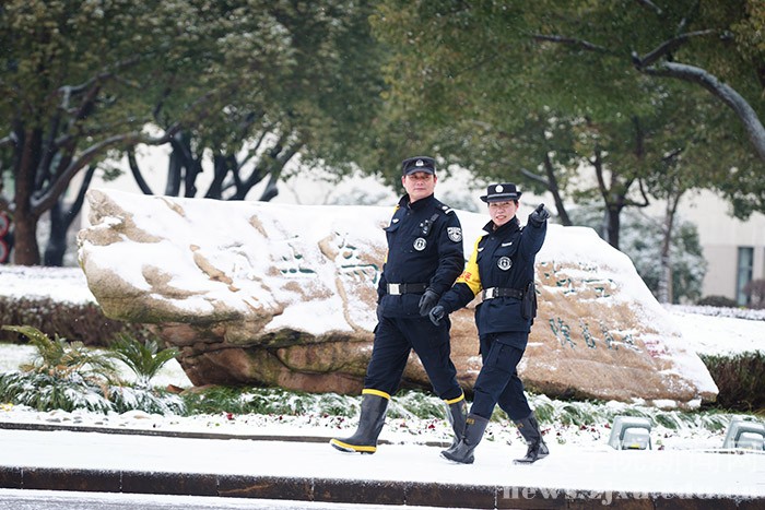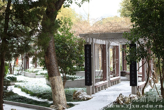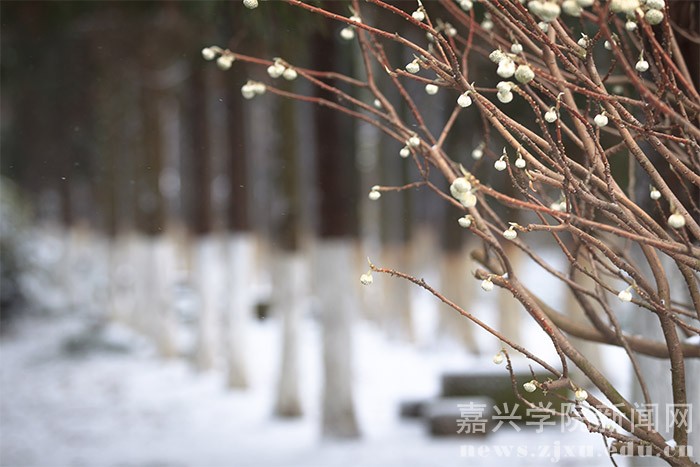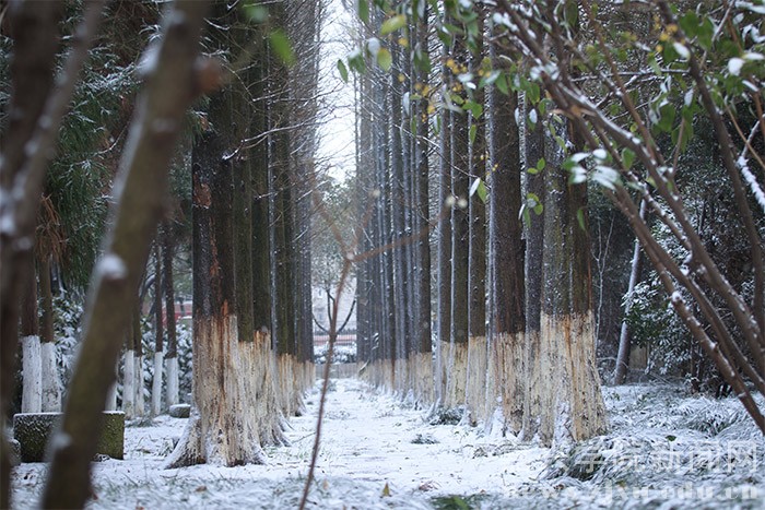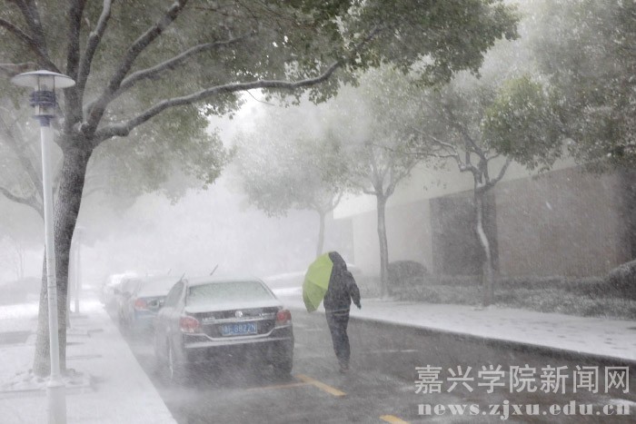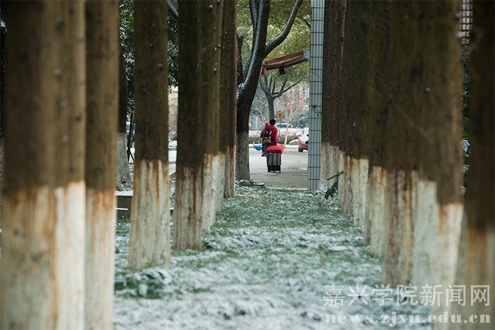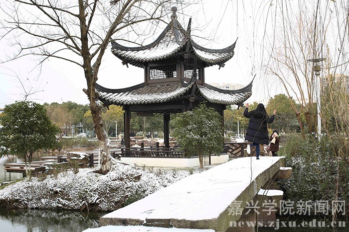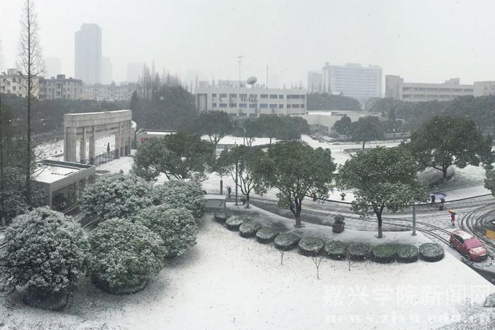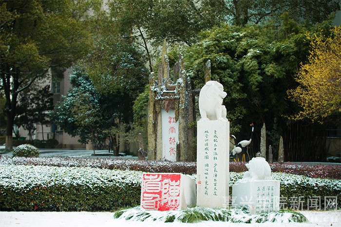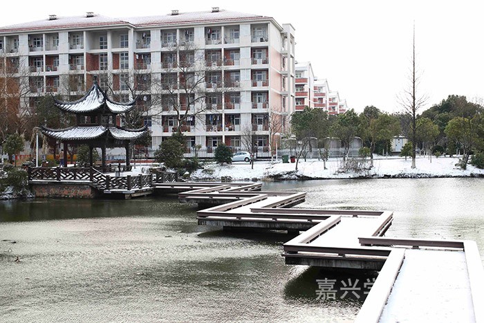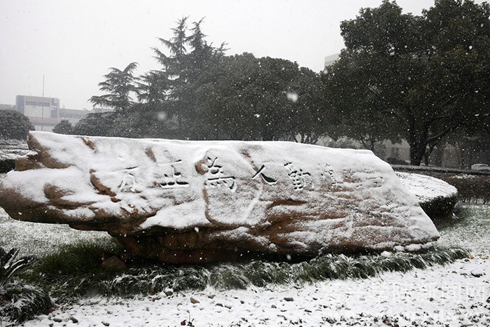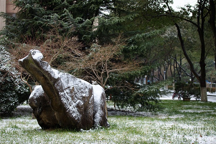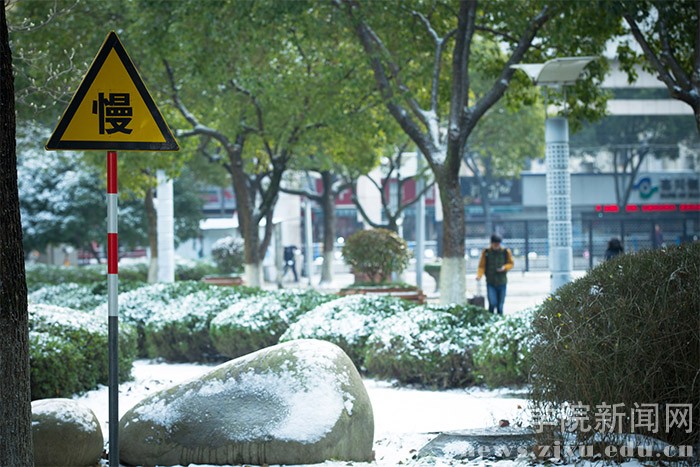 1月23日的早晨,在朋友圈下了许久的一场大雪飘落禾城,将美丽的校园装扮一新。
