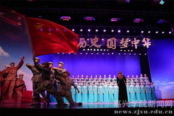 11月5日晚,主题为“铭记历史 圆梦中华”的嘉兴学院反法西斯战争70周年大合唱在梁林校区学生活动中心举行。各学院参演学生个个精神饱满,热情高涨,通过歌声缅怀在抗日战争、世界反法西斯战争中牺牲的革命先烈,弘扬战士们浴血奋战、不屈不挠的革命精神,歌颂了团结一心、繁荣富强的新中国。1000多名师生观看了演出。