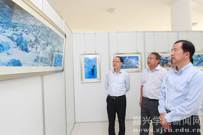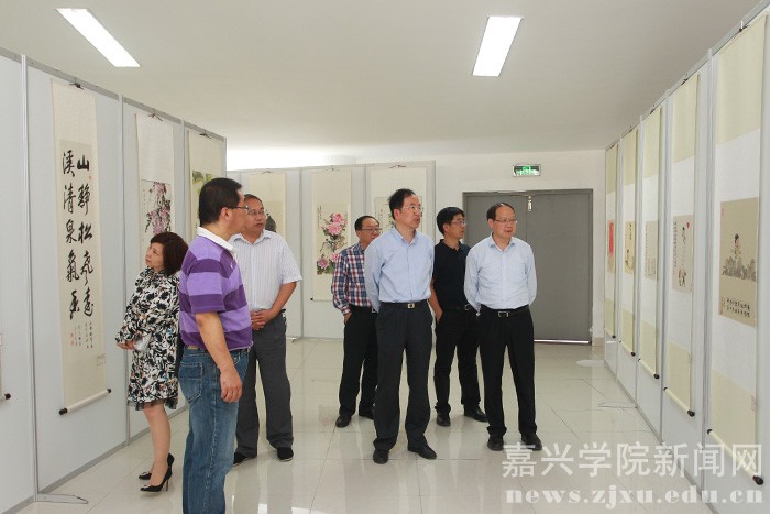 10月26日下午,校党委书记黄文秀,校长盛颂恩,党委副书记吕延勤,副校长严从荃、费建文、周珊、周亚新一行到梁林校区学生活动中心参观了校友书画摄影展。