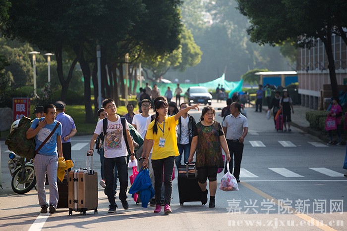 近千名志愿者积极热情地参与到迎新工作中,他们负责现场咨询、道路指引、搬运行李等等工作。从车站到学校,从报到现场到宿舍,佩戴统一证件的志愿者们,穿梭其间,一张张热情洋溢的笑脸,一个个耐心细致的答疑释惑,一次次用心用情的付出,向新生和新生家长们展现了嘉院青年人最美好的形象。