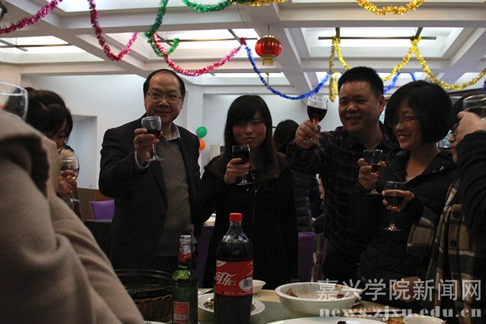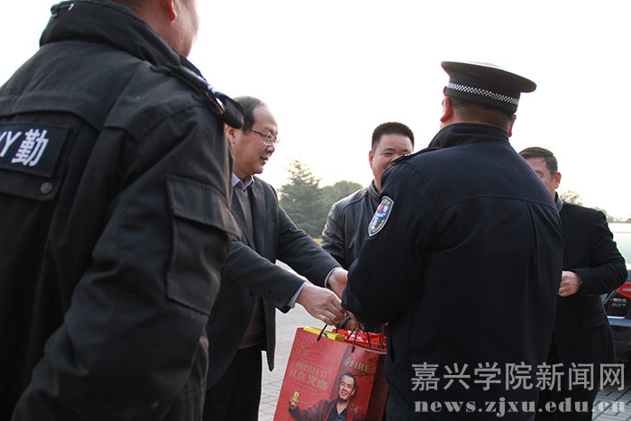 2月16日下午,校党委书记黄文秀、党委副书记史永安一行亲切慰问假期依然坚守岗位的校卫队执勤人员。随后,黄书记一行在越秀校区文苑宾馆餐厅与40名留在嘉兴过年的外省学生齐聚一堂喜迎新年。师生们拉家常,开心品尝学校为大家精心准备的温馨年夜饭,现场欢声笑语不断。
