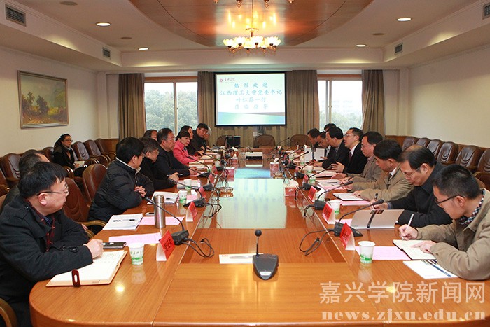 2015年1月13日,江西理工大学党委书记叶仁荪一行9人来校交流访问。校长盛颂恩、副书记吕延勤、副校长严从荃、周珊,党委委员、组织部长周亚新及对口职能部门负责人出席交流座谈会。会上,两校就相互关心的学校内部管理,人才培养,学科发展等问题开展了深入的交流。