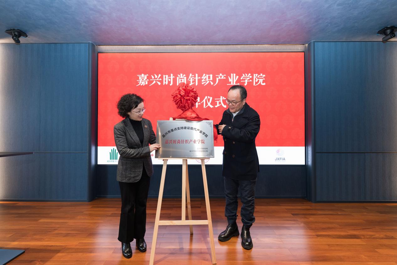 张琦、张华明共同为嘉兴时尚针织产业学院揭牌。