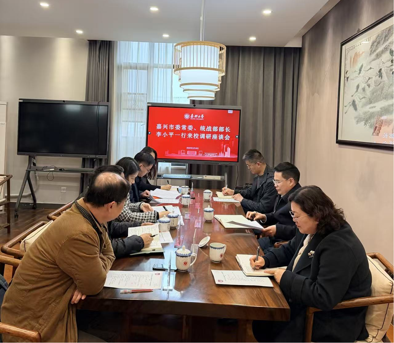 嘉兴市委统战部相关处室负责人,我校党委统战部相关人员参加座谈。