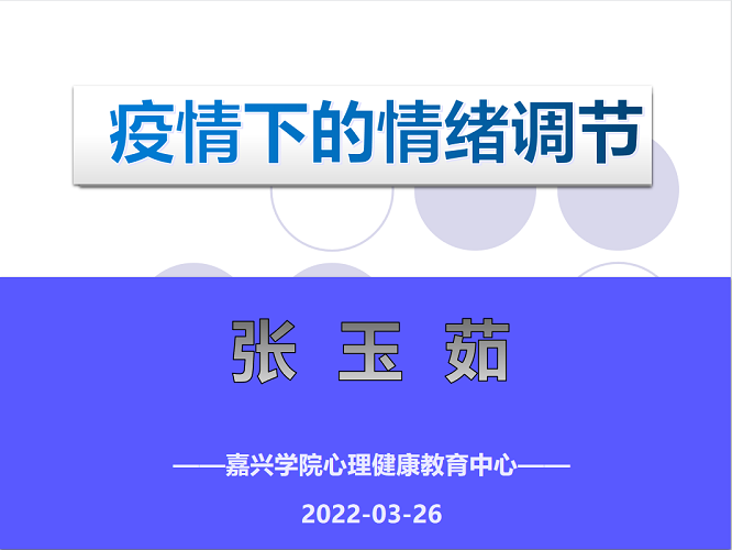 张玉茹分别从“感受情绪”“认识情绪”“情绪管理”三个方面对“情绪调节和追求意义”进行了阐述,从归因、行为改变、自我暗示、寻找归属感等角度介绍了多种情绪管理的方式,如接受现实、作息规律、看喜剧片、保持阅读、每天运动、记录琐事等。她还提供了很多如伸懒腰、深呼吸、放松训练、给特定的人打电话聊天等居家就可以完成的心理安慰方式。直播课持续一个半小时,深受师生的喜爱与好评。