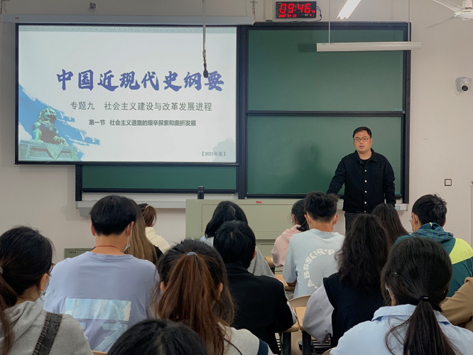王磊老师执教了《中国近现代史纲要》课程的专题教学,内容为专题九“社会主义建设与改革发展进程”的第一节“社会主义道路的艰辛探索和曲折发展”。王老师备课认真充分,课件内容丰富翔实、形式多样,教学仪态大方,课堂节奏收放自如,特别是能够充分运用现代化多媒体手段,引导学生积极思考,启发带动学生参与课堂活动,对学生的疑问和困惑进行耐心细致解答,圆满完成了教学任务。