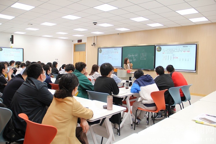 外国语学院丁斓斓、数据科学学院祝颖莲、商学院安娜三位教师进行示范教学。丁斓斓主讲《综合韩语2》,她以在韩国租房为主题,通过极具亲和力的语言引导学生、鼓励学生、与学生交流互动,激发学生学习积极性,展示了扎实的教学基本功。祝颖莲主讲《运筹学B》,她结合个人疫情期间做志愿者的经历,通过润物细无声的方式有机融入思政内容,注重对学生思想价值的引领,并通过运用现代教育技术,使抽象的教学内容具体化、清晰化,助力课堂教学提质增效。安娜老师主讲《“互联网+”营销管理实训》,她通过运用案例教学法,将理论知识点有机融入课程案例中,并善于运用启发式教学、多媒体教学,引导学生主动思考,激发学生的学习创造力。