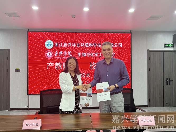 5月19日,我校生物与化学工程学院与浙江嘉兴环发环境科学技术有限公司共举行《产学研合作》签约仪式。环发公司执行董事周安国、总经理许翔宇,生化学院党委书记杨丽娜、环境与生物工程系主任高树梅等一行人员出席仪式。仪式由环发公司总经理助理、校友谭东栋主持。