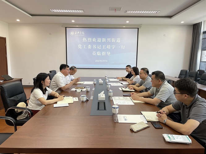 吴云达对新兴街道一直以来对学校事业发展的大力支持表示感谢,并就学校建设发展及服务嘉兴经济社会等情况作了介绍。 双方就积极开展街校合作、发挥四方联动工作机制、联合共建高品质社区居家养老服务站等工作进行了深入交流。 座谈会前,王靖宇一行还实地考察了图书馆、办学成果展示馆。