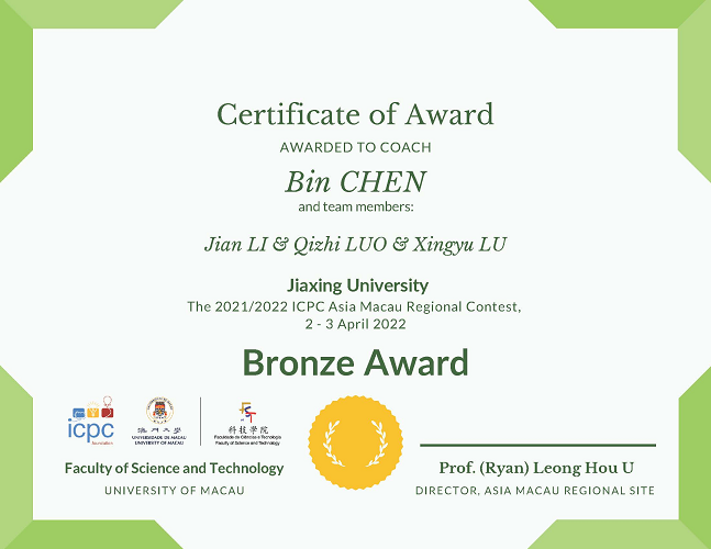 日前,第46届国际大学生程序设计竞赛ACM-ICPC亚洲区域赛(澳门站)落下帷幕,我校由信息科学与工程学院副教授陈滨担任主教练,网络203班罗琦稚、计科181班陆星宇、软件191班李健三位同学组成的参赛队伍斩获铜奖。