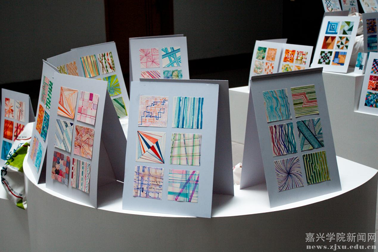 展览由以“点、线、面”课程基础教学结合色彩设计方式的教学成果展示、以“五彩嘉兴“为主题展开的空间色彩构成呈现、以思政教学融入艺术设计专业课程的成果展现、以依托“环保袋”为载体的“设计”主题呈现四大板块组成,共展出个人画作90余件,主题系列作品4件,环保创意布袋20余个,主题展板5件。学生在创作过程中运用了量绘画技法对色彩进行表达,如平涂法、勾线法、点绘法、喷溅法、粘贴法等,使每件展品具有更加浓厚的色彩气息与艺术底蕴。