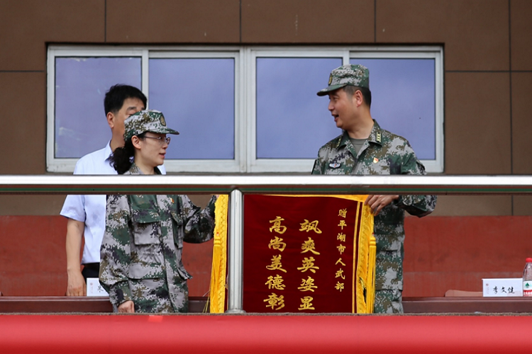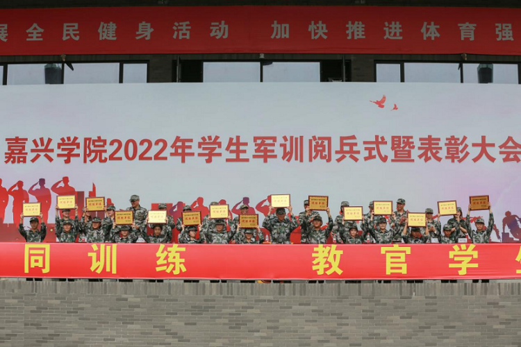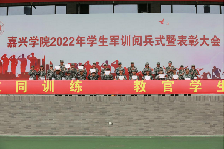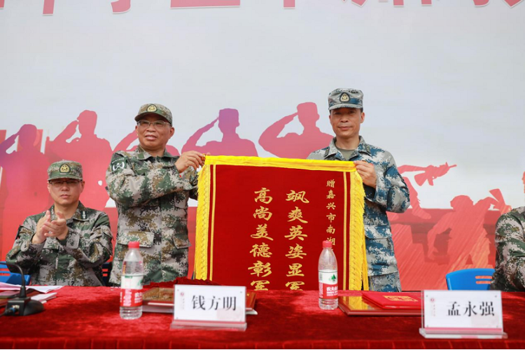 在阅兵式暨表彰大会上,钱方明、张琦分别代表学校向教官派出单位代表——南湖区人武部、平湖市人武部赠送锦旗;与会领导为受到表彰的优秀教官、军训优胜单位及各连军训优秀学员代表颁发荣誉证书。
