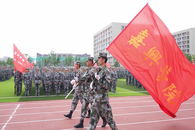 军训是大学生的必修课,也是国防教育的重要组成部分。我校历来高度重视军训工作。在庆祝中国共产党成立101周年之际,学校将党史学习教育常态化长效化开展有机融入军事技能训练、国防教育和军事理论知识教学等环节,全面回顾了中国共产党领导中国人民不懈奋斗、从胜利走向胜利的伟大历程,进一步增强了大学生学习党史、军史的积极性和主动性。在为期14天的军训里,学校共有4个团、13个连、80个排合计4100余人参加了队列、纪律、内务等三大条例训练和消防知识讲座。全体军训学生参加了模拟打靶训练,部分学生还观看了学校原创红色话剧《初心》话剧、聆听了省身讲堂讲座。军训期间,全体教官恪尽职守,严格要求,率先垂范;参训学生严于律己、顽强拼搏、吃苦耐劳;学校相关部门(单位)协同配合、精心服务,确保了军训工作的圆满完成。