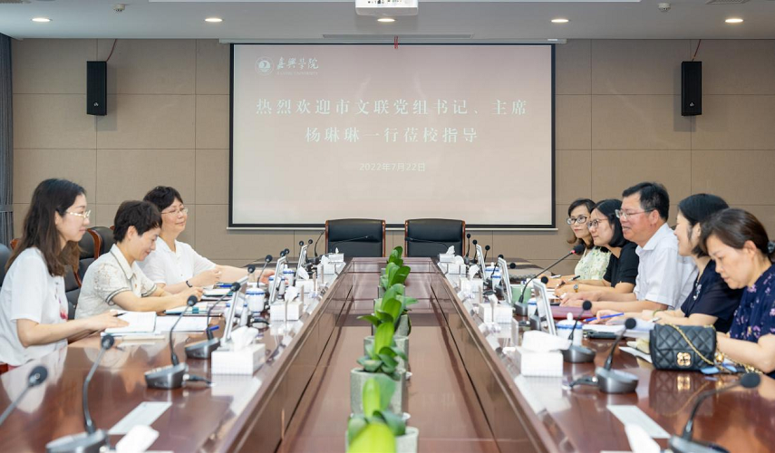 7月22日,嘉兴市文联党组书记、主席杨琳琳,党组成员、副主席傅琦红一行来校调研考察。校党委副书记吴云达出席座谈会。
