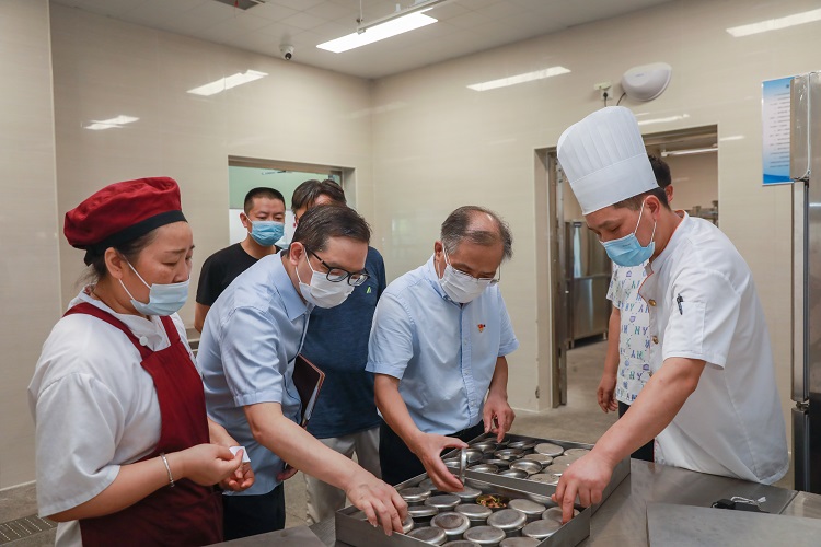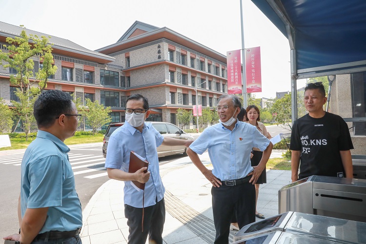8月16日上午,校党委副书记钱方明、副校长周宏伟带领有关职能部门负责人检查开学各项准备及疫情防控工作。