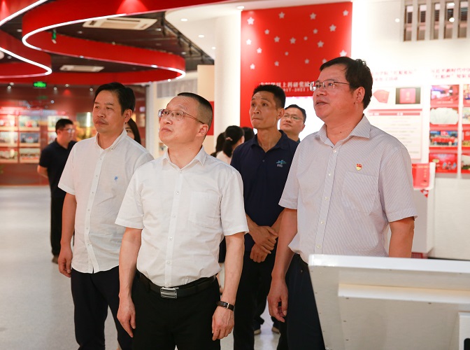 会前,郑泽挥一行实地考察了学校红船精神育人成果展示馆、图书馆、信息网络与智能研究院。
