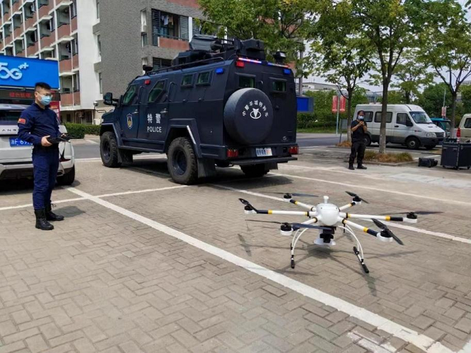 8月25日,嘉兴经开区公安分局将巡特警的装甲车开进我校梁林校区,利用无人机在校园内对正在军训的2022级新生开展反诈、防爆等的宣传教育,提升他们的自我防范意识。