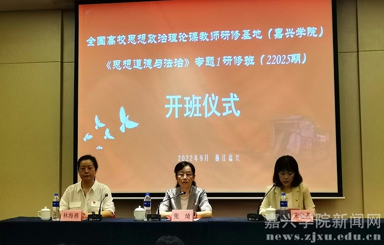 9月13日至17日,由教育部社科司主办,浙江省教育厅、嘉兴学院承办的全国思想政治理论课教师研修基地(嘉兴学院)《思想道德与法治》专题1研修班举办。党委委员、副校长张琦出席开班仪式并致辞。来自省内36所学校的60名思想政治理论课教师参加研修。
