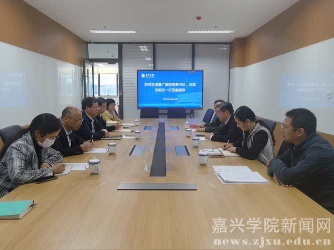 10月28日上午,嘉广集团党委书记、总裁沈炳忠一行来校调研,就有关项目合作问题进行洽谈。校党委副书记吴云达出席座谈会。