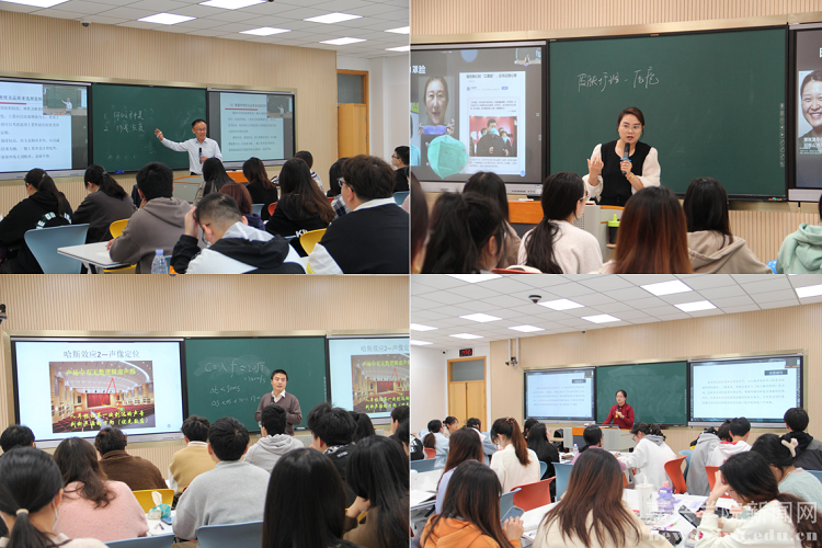 黄立新教授示范了翻转课堂教学模式的有效运用。他注重引导学生关注现代技术发展对环境的影响,同时以期刊论文介绍等形式带领学生学习学科前沿知识,展示了如何提升课堂教学的“高阶性”。周丹老师的课程思政真正做到了“润物无声”,她结合疫情防控期间医护人员的“口罩脸”,自然过渡到课堂“压疮”主题;善于运用各类道具来调动学生的学习积极性,教学方法灵活有趣,课堂气氛非常活跃,学生整体参与度极高。李志勇展示了如何将理论性很强的课程上得生动有趣,张弛有度的节奏、恰到好处的互动,将冷冰冰的“声音的传播与计量”问题讲得深入浅出,学生收获感满满。张宇副教授示范了各种互动教学模式的有效运用,她以写作中的叙述方法为主题,采用小组讨论等多种教学手段,辅以现代教育技术,引导学生主动思考,激发学生创作热情,将枯燥的《大学写作》课堂上得生动有效。四位教师的教学态度都极其认真,现代教育技术运用娴熟,教学方法灵活多样,起到了很好的示范作用,得到了观摩教师的一致好评。