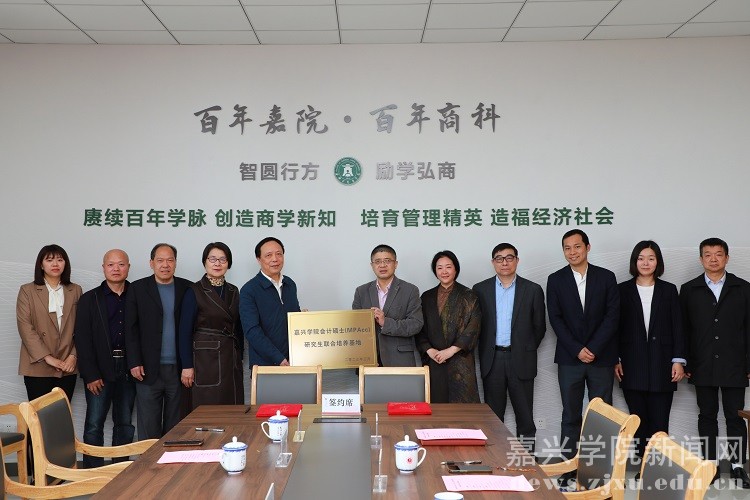 4月10日,我校与嘉兴市上市公司发展促进会会计硕士研究生联合培养基地签约仪式举行。副校长陈荣达,嘉兴市上市公司促进会会长周楚兴、秘书长章世英出席仪式。