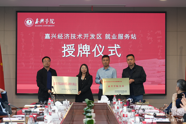 会上,嘉兴经济技术开发区经济发展部负责人围绕“校地联动促就业”主题作交流发言,还举行了“就业服务站”“新时代文明实践点”授牌仪式,开辟了毕业生留禾就业的“新窗口”。校园就业服务站是学校、政府和企业沟通的桥梁,可以更好地为学生毕业就业、留嘉生活以及企业招才引智提供有效渠道。