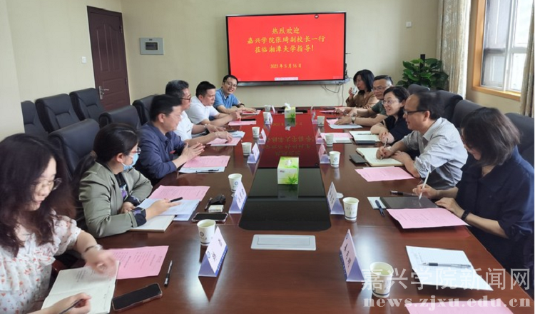 在湘潭大学,张琦介绍了嘉兴学院红船精神育人体系建设和近年来取得的主要办学成绩。她希望两校加强合作,用好红色资源,育好时代新人。喻祖国对张琦一行的到来表示欢迎,介绍了湘潭大学的基本情况。他希望两校进一步加强交流合作。双方围绕马克思主义学院改革发展的举措与经验、一流本科专业建设和教学质量监控与教师教学发展等进行了深入交流。