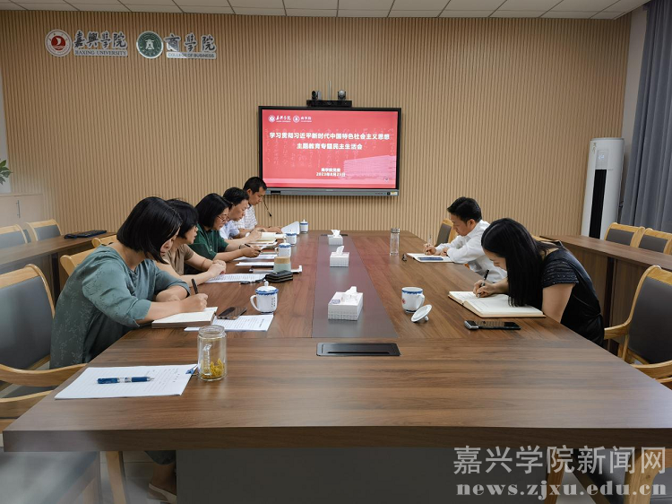 近日,商学院召开主题教育专题民主生活会。校党委书记卢新波到会指导。