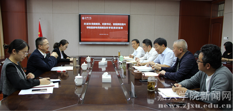 10月11日,党委委员、纪委书记、省监委驻嘉兴学院监察专员陈新友到平湖师范学院(应用技术学院)调研。