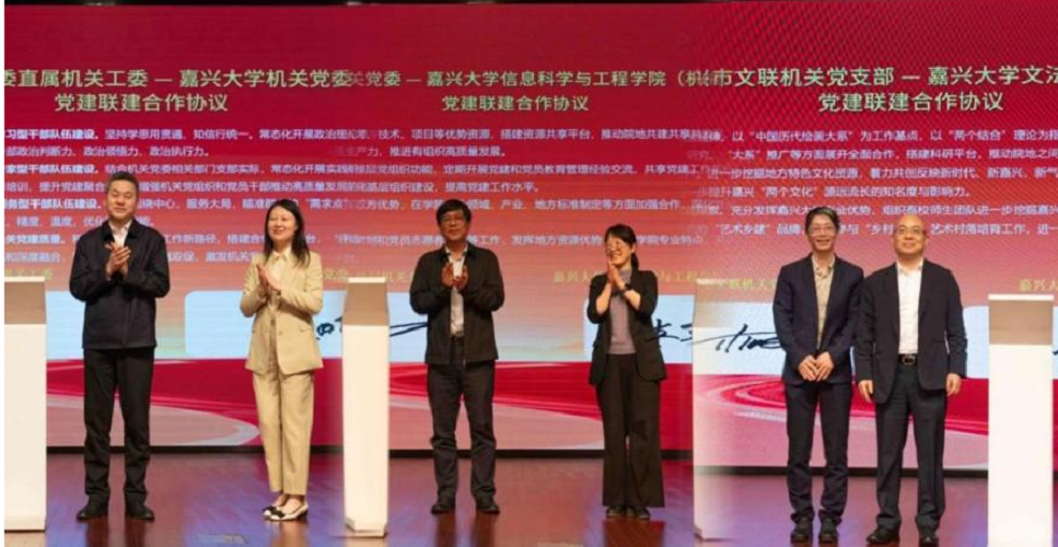 会上,嘉兴市委直属机关工委、嘉兴市市场监督管理局党委、嘉兴市文联机关党支部分别与学校机关党委、信息科学与工程学院(机械工程学院)党委、文法学院党委签订了党建联建协议,进一步加强校地合作,共同推进党建与业务的双融双促。