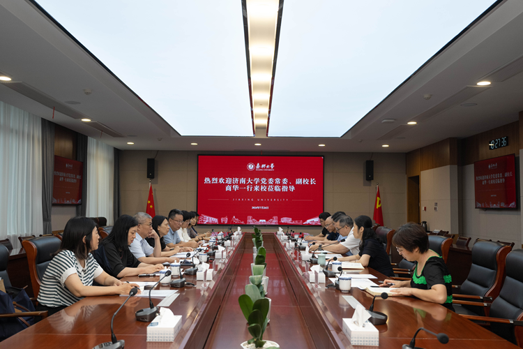 7月26日上午,济南大学党委常委、副校长商华,党委常委、党委统战部部长、台港澳事务办公室、宗教事务办公室主任徐庆国一行来我校交流访问,副校长周宏伟出席座谈会,座谈会由校党委组织部(统战部)部长、人才办主任陈立力主持。