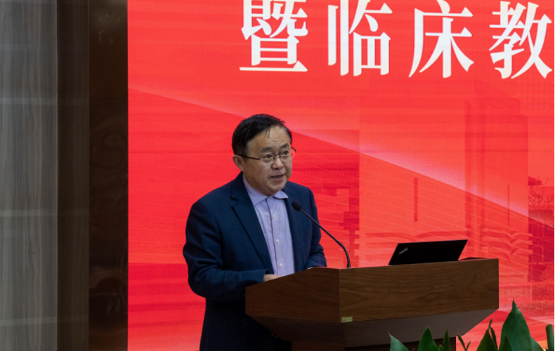 发展规划处、人事处、教务处(医院管理办公室)、研究生处、科技处、教师发展中心负责人,医学院党政班子成员,各临床教学基地院长、分管教学副院长等教学管理人员,临床教师教学发展分中心全体成员,各教研部相关负责人等共110余人参加现场会议,各临床教学基地教学管理人员和临床任课教师140余人通过线上方式参会。