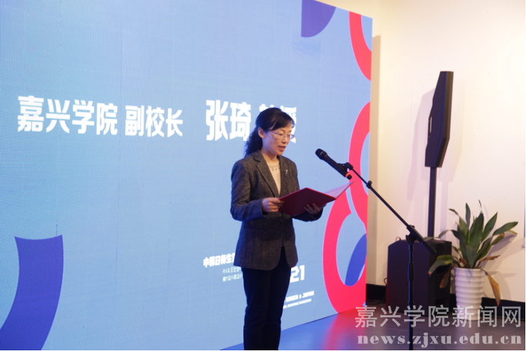 张琦代表学校向出席开幕式的领导、嘉宾表示欢迎。她指出,当前设计的本土化与国际化是中韩日三国艺术设计界共同面对的重要课题,而高等学校艺术设计教育是应对这一课题的重要阵地。她希望,嘉兴学院、韩国白石大学、日本东亚大学积极参与、深入探讨艺术设计和艺术设计教育,将联展办成交流、发展艺术设计与艺术设计教育的重要平台,共同为实现东亚地区艺术设计的本土化与国际化作出贡献,同时期待更多的亚洲国家、更多的亚洲高校参与到展览中。