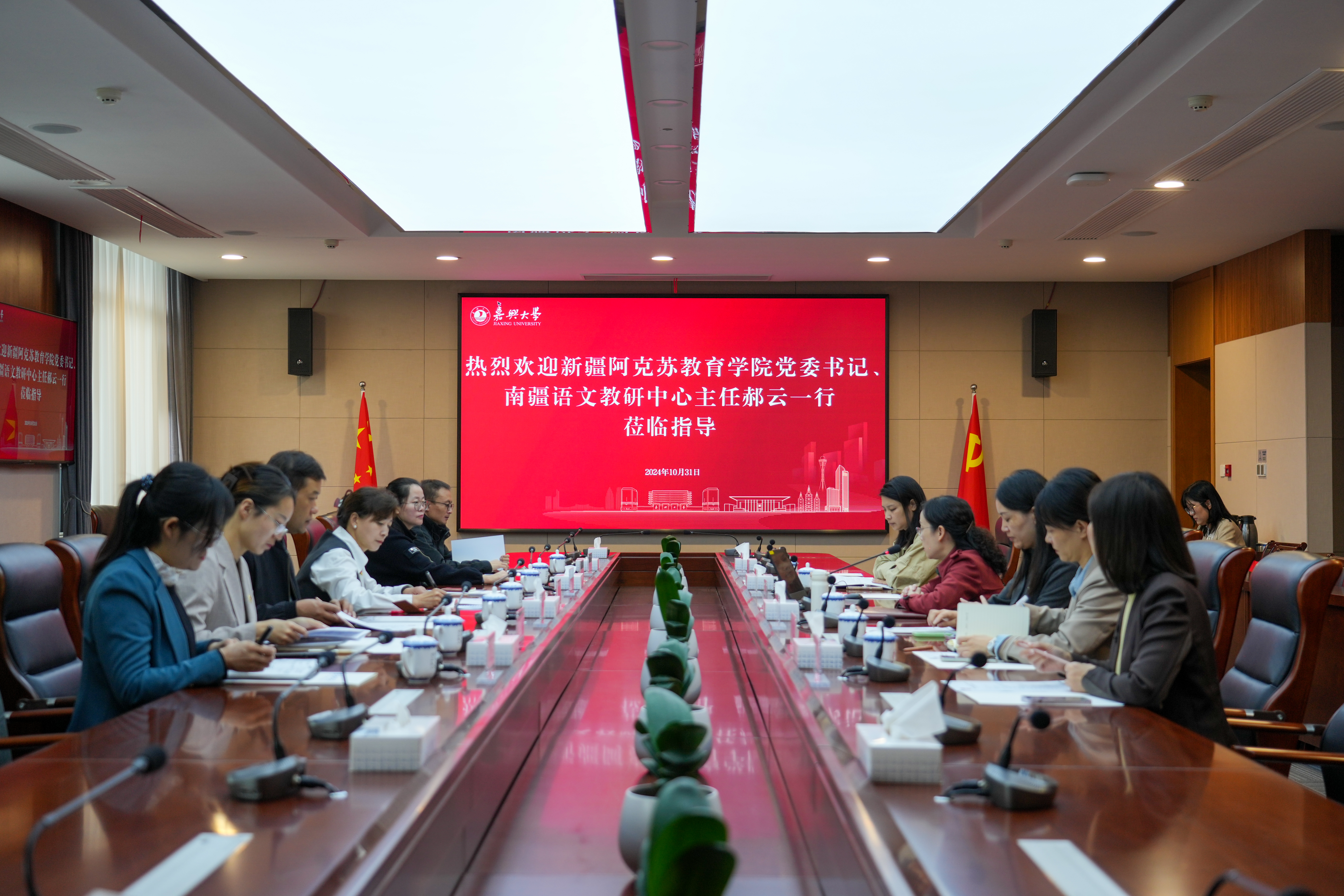 10月31日,新疆阿克苏教育学院党委书记、南疆语文教研中心主任郝云一行来校调研交流。校党委委员、副校长(主持日常工作)张琦出席座谈会。