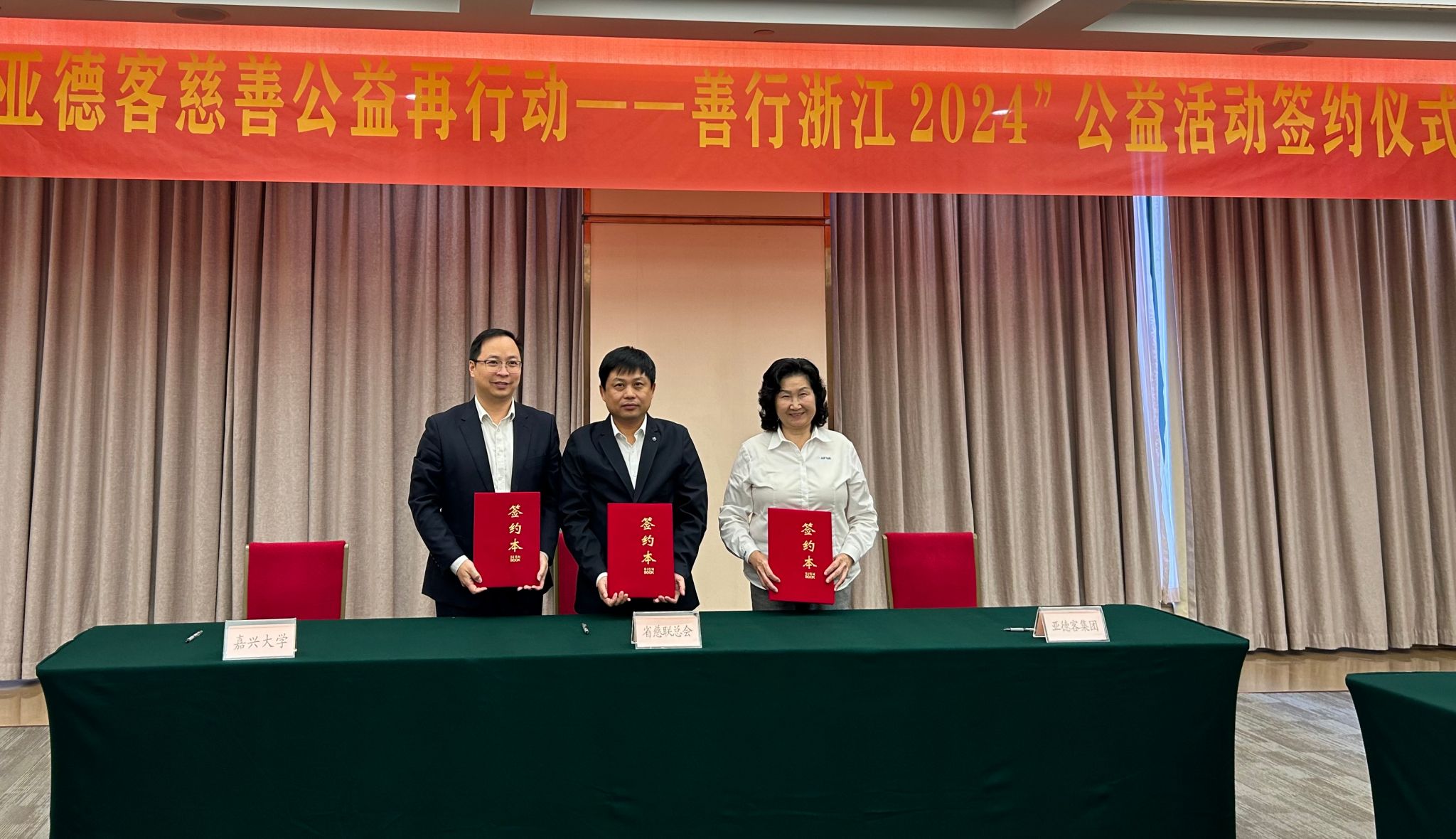 王立玮、楼喻刚和廖锦琳代表三方签署合作协议。亚德客国际集团董事长王世忠先生通过浙江省慈善联合总会向我校教育发展基金会每年捐赠人民币54万元,持续6年,合计324万元,用于支持我校教育事业发展,帮助困难学生。会上,廖锦琳详细介绍了“亚德客慈善公益再行动——善行浙江2024”项目实施内容。