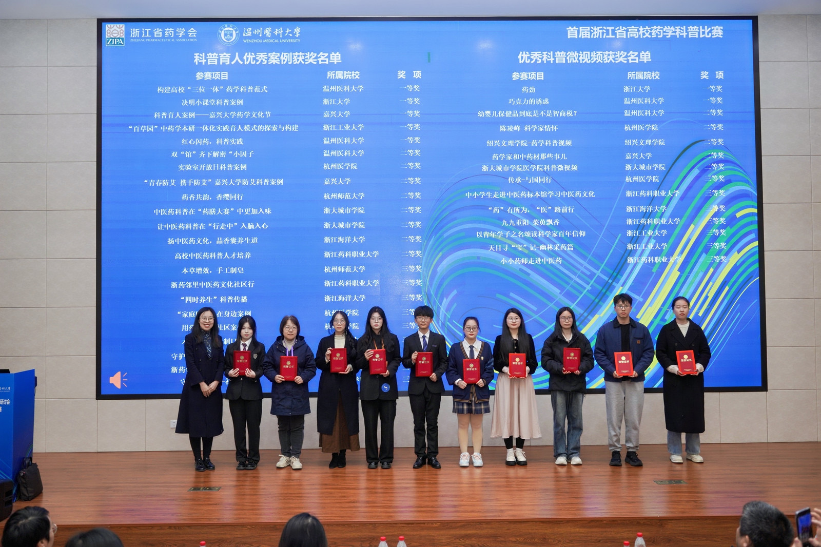 近日,首届浙江省高校药学科普比赛在温州圆满落幕,比赛涵盖了科普育人优秀案例、优秀科普微视频评选,以及科普“答”人知识竞答与科普“达人”展示四个单元。经过激烈的角逐,我校医学院学子荣获一等奖1项、二等奖2项、三等奖1项,团队获“浙江药学优秀科普团队”称号。