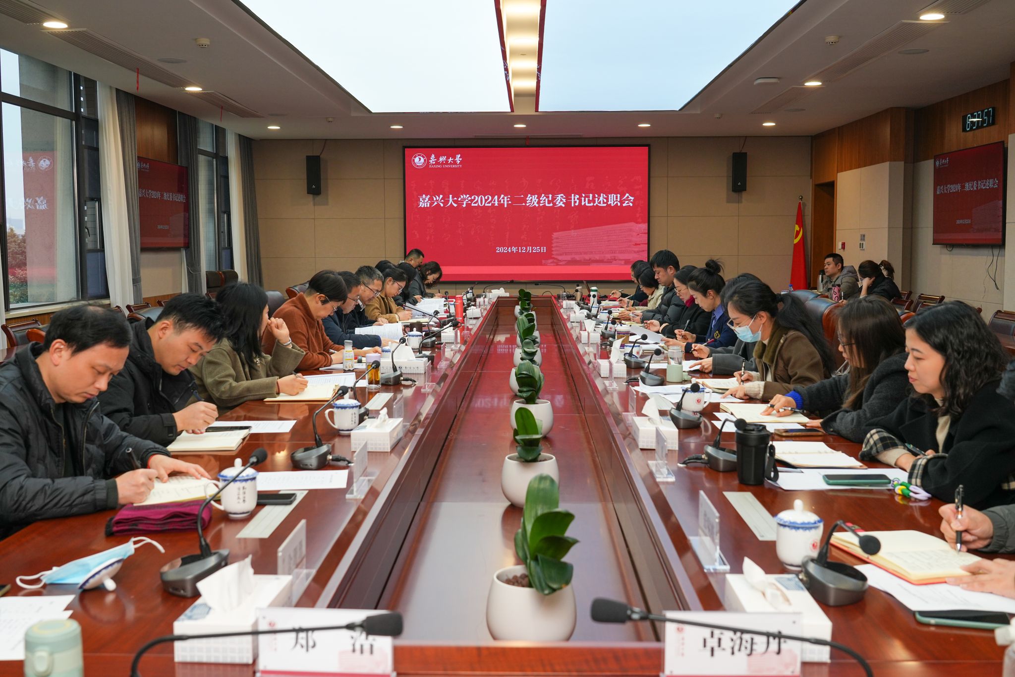 12月25日上午,我校纪委2024年度二级纪委书记工作述职会议在行政楼346会议室召开,校党委委员、纪委书记、省监委驻嘉兴大学监察专员陈新友出席会议并讲话。