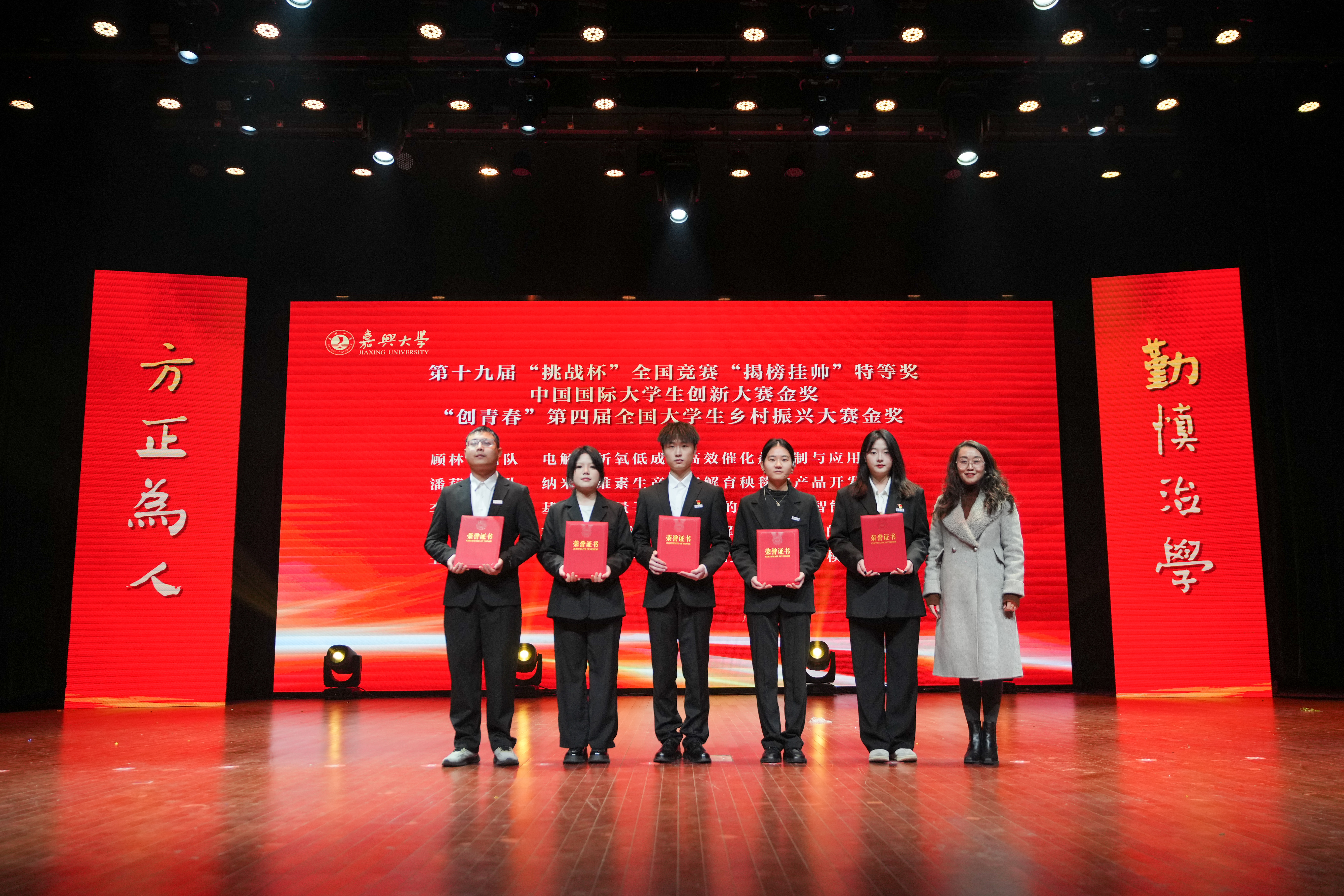对第十九届“挑战杯”全国竞赛“揭榜挂帅”特等奖、中国国际大学生创新大赛和“创青春”第四届全国大学生乡村振兴大赛金奖代表进行表彰